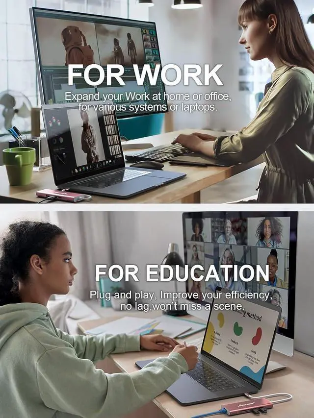 4K HDMI for Crisp Work & Entertainment Displays: Enjoy stunning 4K@60Hz output when connecting to external monitors, TVs or projectorsideal for multitasking, presentations, working from home or immersive streaming. Stable signal transmission ensures smooth, detailed visuals every time.
