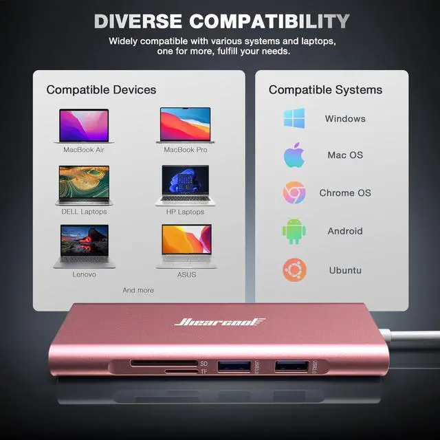Designed for Productivity Compatible for MacBook & Most USB-C Laptops: Built to expand your MacBook's USB-C ports, this 8-in-1 hub delivers essential connections for office, home, business travel, online classes and video conferencing. Fully compatible for MacBook Pro/Air, Dell XPS, HP, Lenovo and more USB-C laptops.