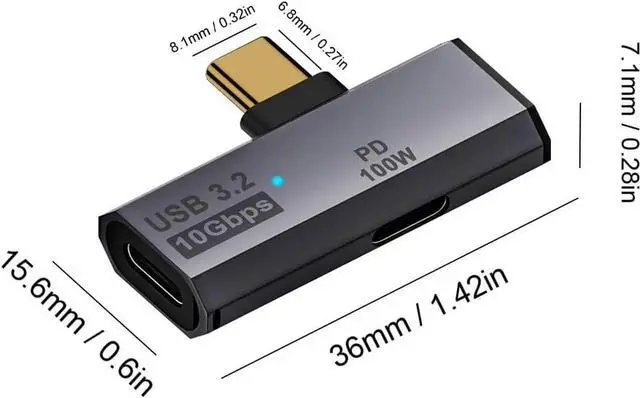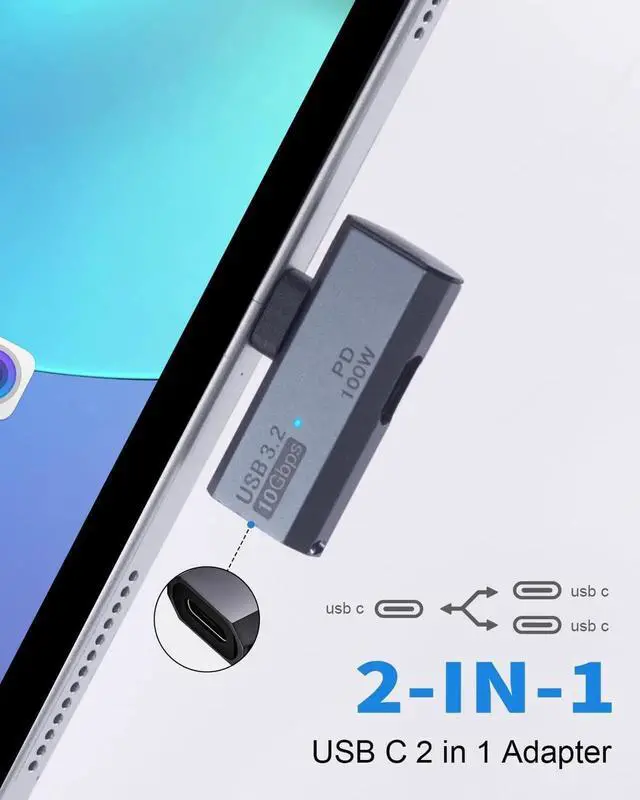 • The 90 Degree USB C splitter charger adapter complies with the USB 3.2 standard, with data transfer speeds up to 10Gbps. Transferring files, movies, music, etc., can be completed in just a few seconds. The perfect compact right-angle design keeps cables neat.