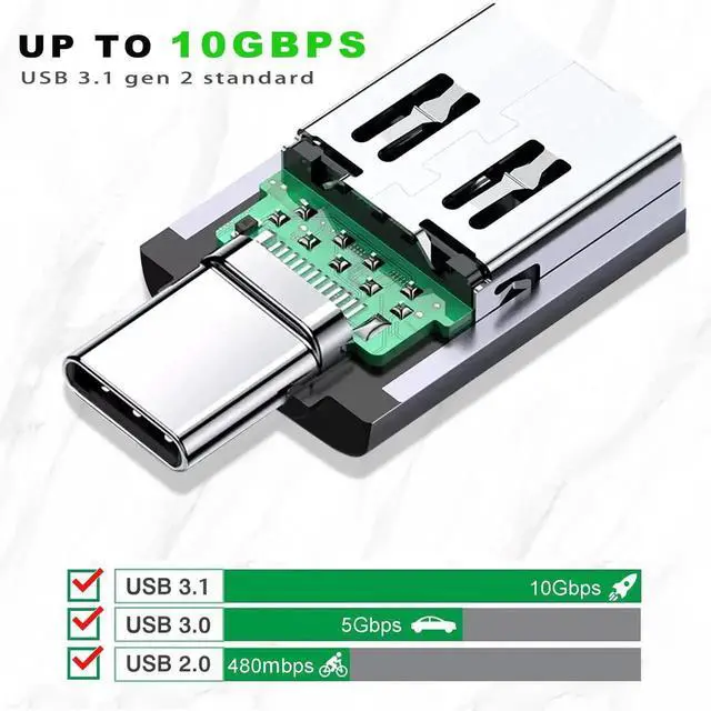 • USB3.1 gen 2 protocol, super high-speed data transmission up to 10Gbps, 20 times faster than USB 2.0. Connect files, high-definition movies, and songs to your USBC device in seconds