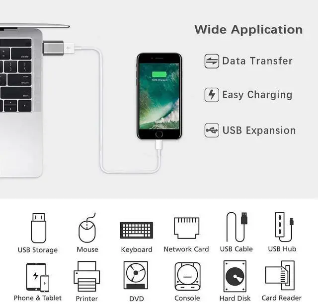 Compatible with USB-C port devices: laptop, tablet, smartphone, PC, camera etc