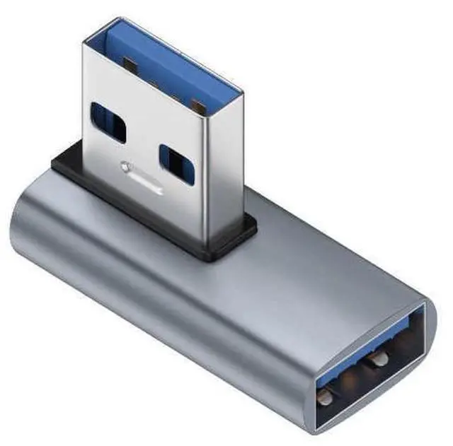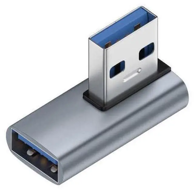 SOEWIOU practical left middle bend USB elbow adapter features USB A male to A female conversion with leftward L-shaped middle bending design, perfectly solving crowded interface space on laptops, tablets and desktops. Supporting up to 10Gbps high-speed data transmission, it ensures fast transfer for U disks, external SSDs and large file data. The left middle bend avoids cable squeezing and sharp folding damage to ports and lines, optimizing wiring tidiness and protecting original device interfaces. Plug and play without drivers, built with premium shielding for stable anti-interference signal, durable reinforced shell for long-term daily use. Ideal for home office, gaming arrangement, hidden wiring and regular USB port expansion.
