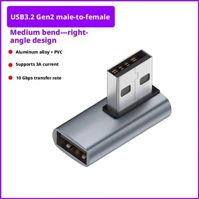 SOEWIOU premium right middle bend USB elbow adapter adopts practical USB A male to A female design with rightward L-type middle bending, perfectly solving crowded port space on laptops, tablets and desktops. Supporting up to 10Gbps ultra-fast data transmission, it ensures smooth transfer for USB flash drives, external SSDs and large file data. The right middle bend avoids cable squeezing and sharp folding damage to interfaces and wires, keeping desktop wiring neat and protecting original device ports. Plug and play without drivers, built with multi-layer shielding for stable anti-interference signal, durable reinforced housing for long daily use. Ideal for office layout, gaming setup, hidden wiring and daily USB port expansion.