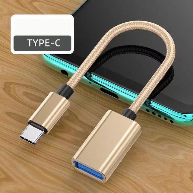SOEWIOU Type-C to USB-A female OTG cable supports OTG data reading and 2.0A fast charging. It allows Type-C smartphones and tablets to connect with USB flash drives, keyboards, mice and car USB devices. Stable transmission, durable construction, stylish gold color for daily and car use.