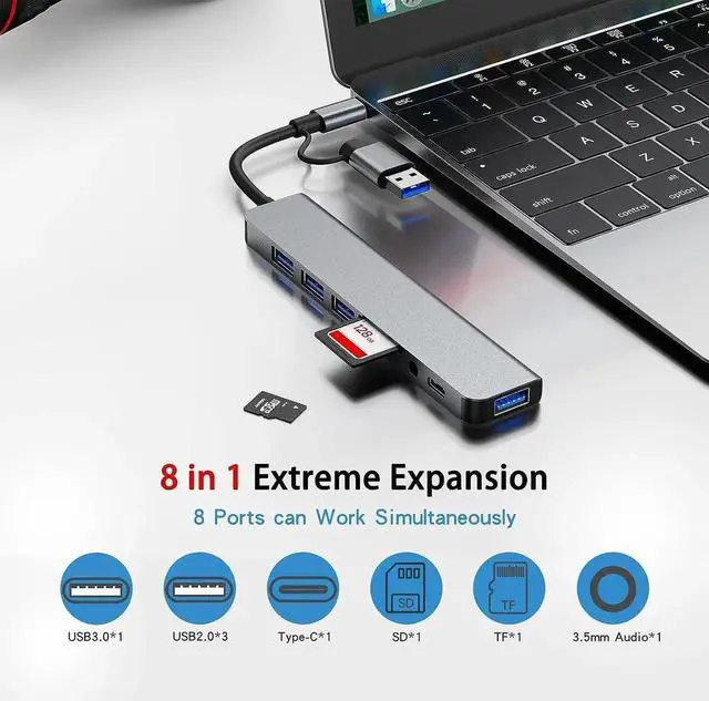 ![Alt view image 6 of 7 - [8-in-1] USB Hub, USB-C Hub, Multiport USB Adapter with Type C & USB 3.0 2-in-1 Interface, Ultra-Slim USB 3.0 Splitter, Multi Extension with Micro SD and SD Card Reader for Mac-book,PS5,Laptop,Desktop](https://c1.neweggimages.com/productimage/nb640/C601S26041505UI7K5D.jpg)
