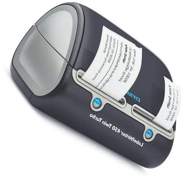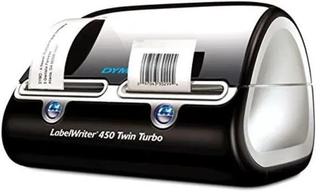 The DYMO LabelWriter 450 Twin Turbo features two rolls of labels ready to print at all timesenhancing efficiency by allowing you to print address labels and postage without swapping label rollsand prints up to 71 four-line standard address labels per minute for maximum productivity.