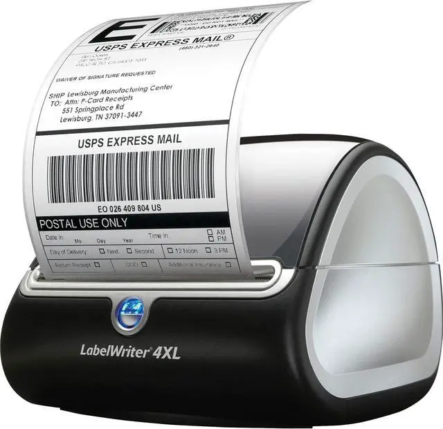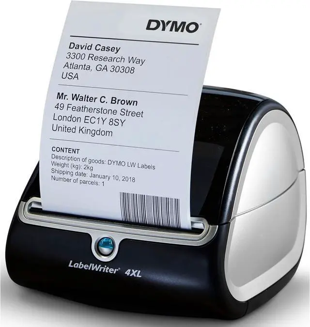 The DYMO LabelWriter 4XL is a versatile and compact desktop label printer designed to deliver high-quality, large-format labels for shipping, inventory management, and other professional labeling needs. Using direct thermal printing technology, it produces sharp, smudge-proof, monochrome labels without the need for ink or toner. With USB connectivity, it easily integrates with both Mac and Windows systems, offering plug-and-play functionality for hassle-free setup.