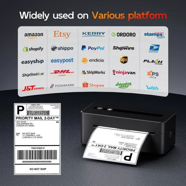 Easy to Setup: Built with a high-performance thermal print head, thermal label printer delivers reliable speed and precise printing for all your shipping needs. With Bluetooth connectivity, setting it up is a breezejust pair it with your phone via the Labelife app, and youll be ready to print in minutes. It works seamlessly with major shipping carriers (FedEx, UPS, USPS) and e-commerce platforms (Amazon, Shopify, Etsy, eBay), helping you simplify your shipping workflow right away.