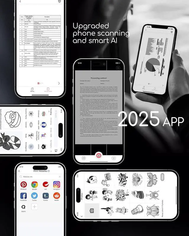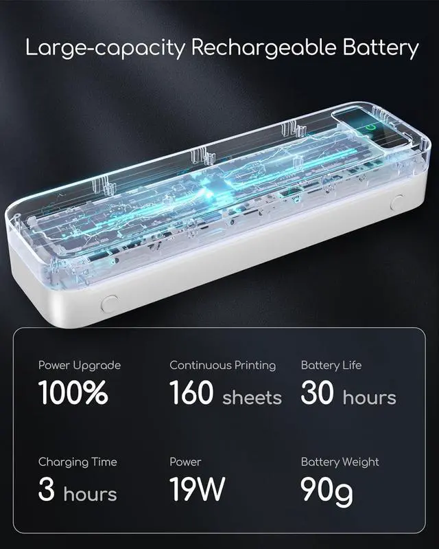 Portable Printers Wireless for Travel [Compact & Space-saving]: Portable printer built-in high-capacity rechargeable battery, print 160 sheets of 8.5'' x 11'' thermal paper per charge. Weighs only 1.5lb and is small in size. This inkless portable printer fits easily into a backpack or briefcase! Ideal for on-the-go printing during business travel, in car or truck, small office, construction site, school and home use. You can print documents, contracts, invoices, receipts and boarding passes anytime, anywhere