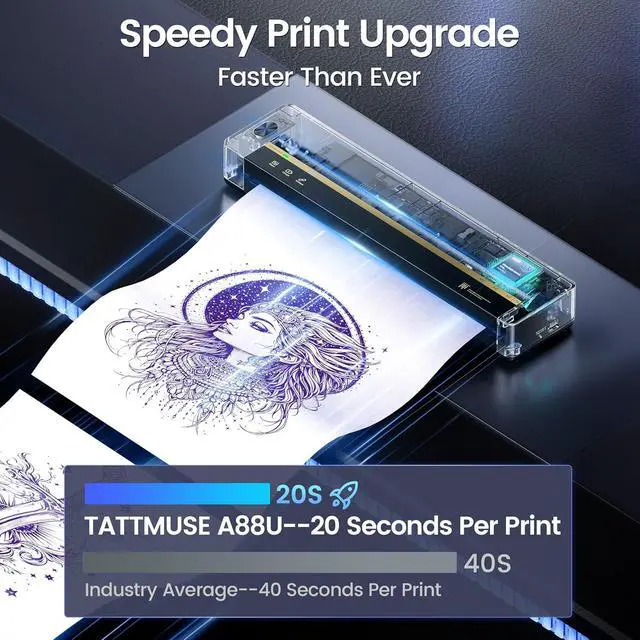 Crisp 300 DPI Detail & Wrinkle-Free Speed: Tattmuse tattoo stencil printer combines 300 dpi high-resolution printing with patented anti-wrinkle technology, producing razor-sharp line art every time. Get a flat, distortion-free transfer in about 10sso you spend less time prepping and more time tattooing with confidence