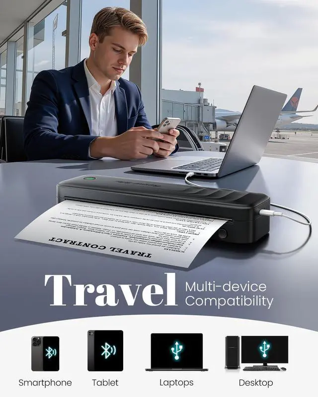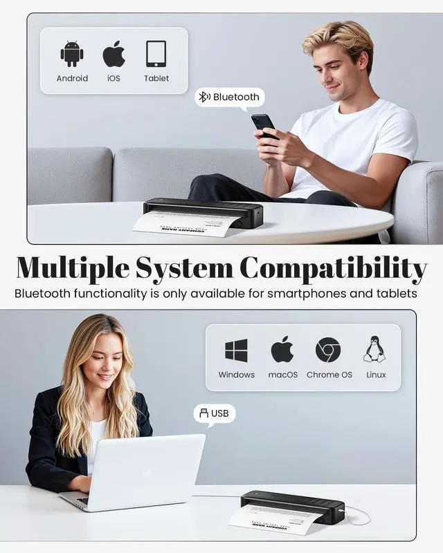 Wide Device Compatibility: Wireless portable printer can easily connect via Bluetooth to smartphones or via USB to PCs, compatible with Android, iOS, Windows 10/11, Linux, ChromeOS, and macOS, making it accessible to a wide