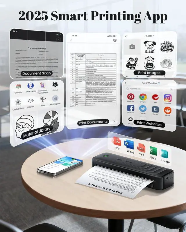 Exceptional Print Clarity: High Resolution Inkless portable thermal printer provides a remarkable 50% improvement in print clarity. Thanks to the latest thermal print head, it ensures sharp and clear prints for various applications, whether it's taking notes or printing important documents.