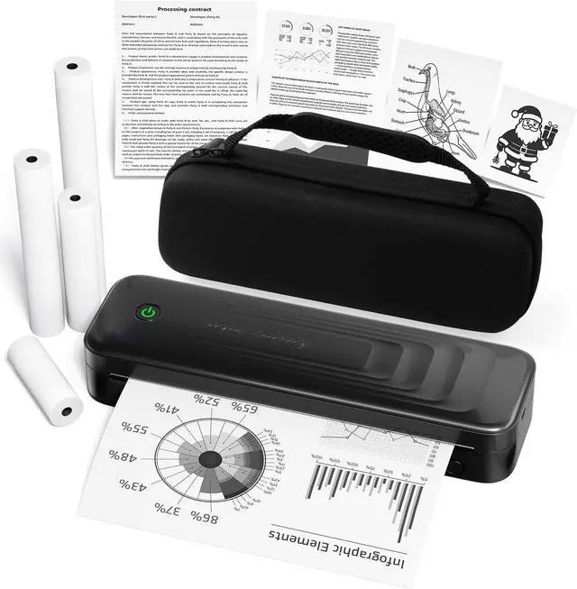 What's is in Package:1 Portable Thermal Printer,1 Carry Case,1 Roll 8.5" Thermal Paper,1 Roll 4.33" Thermal Paper,1 Roll 3.14" Thermal Paper,1 Roll 2.08" Thermal Paper,1 USB-C to USB Adapter,1 USB-C Cable