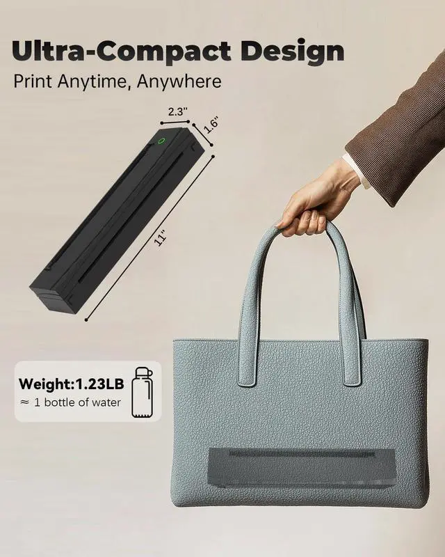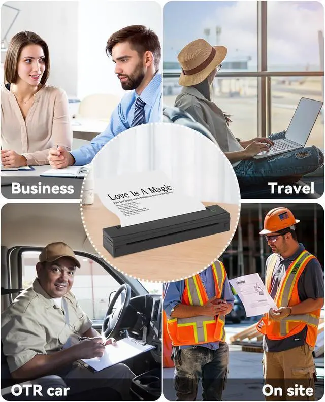 Inkless printing - Supports thermal paper in US letter, A4, A5, and B5 sizes. This portable printers wireless for travel adopts advanced direct thermal technology to achieve inkless and eco-friendly printing without the need for ink cartridges.