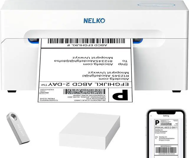 NASA Nelko Bluetooth Thermal Shipping Label Printer, Wireless 4x6 Shipping Label Printer for Small Business, Support Android, iPhone and Windows white