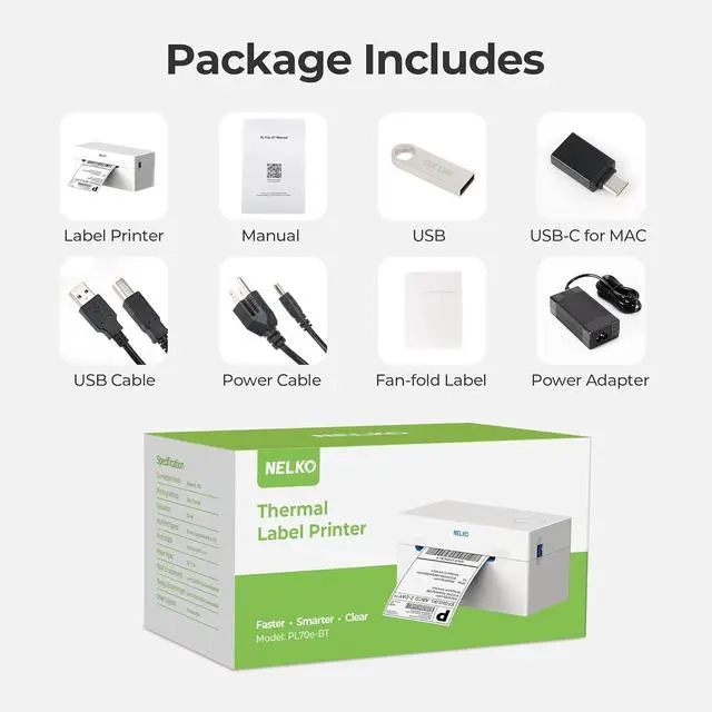 5. Suitable for Commercial and Home Use: Printer driver, instruction videos and problem shooting videos are provided in U-Disk for better setting. Nelko PL70E label printer is much smaller than traditional printers and only requires a small piece of space to achieve printing. Very suitable for printing shipping labels, mailing labels, price labels, barcode labels, name tags and all kinds of small category labels