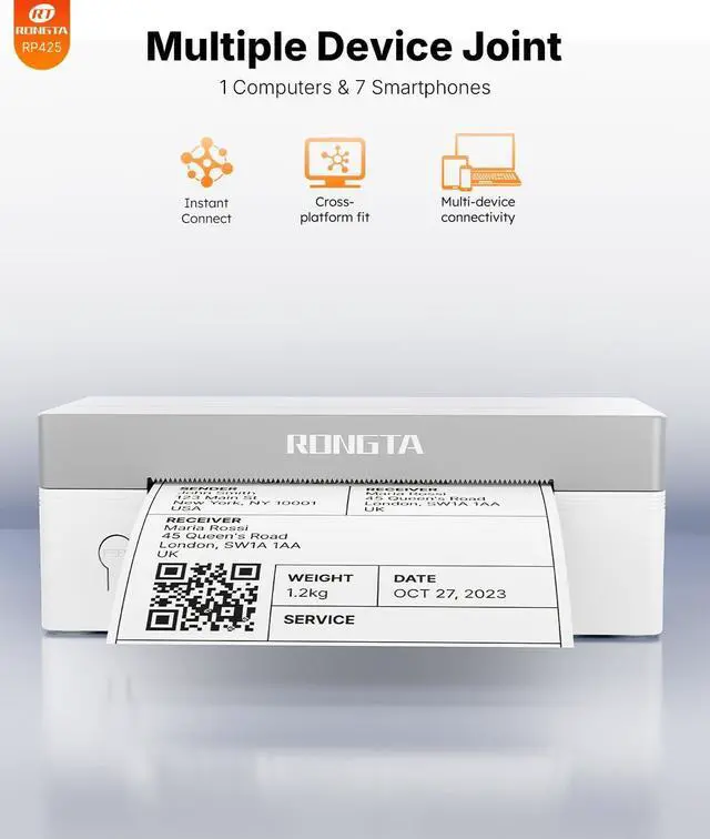 NASA Rongta Shipping Thermal Label Printer, Bluetooth 4x6 Sticker Label Maker Wireless Shipping Label Printer for Package Small Business Compatible with Windows macOS Android iOS