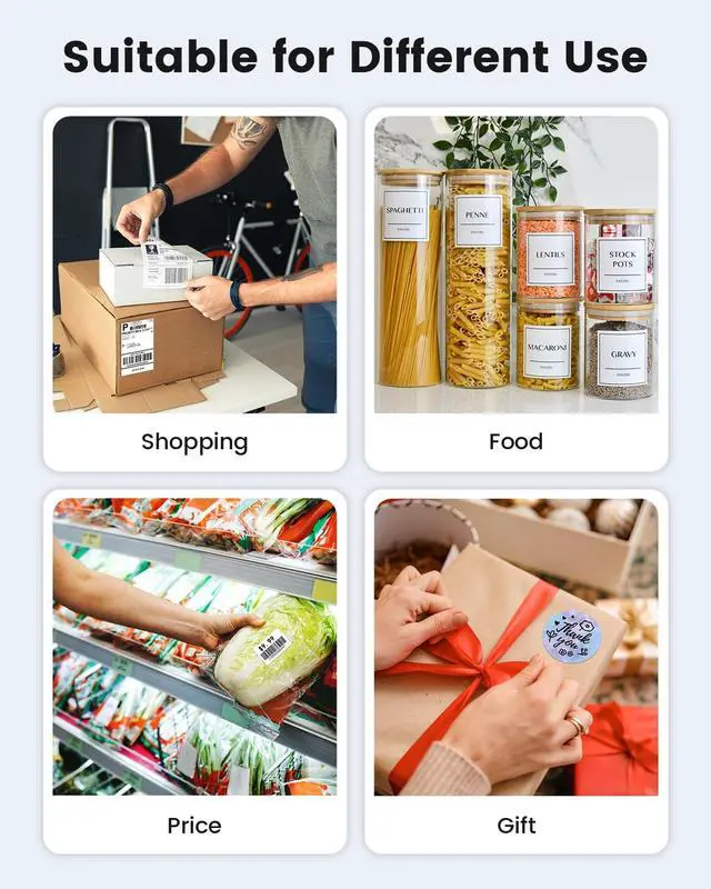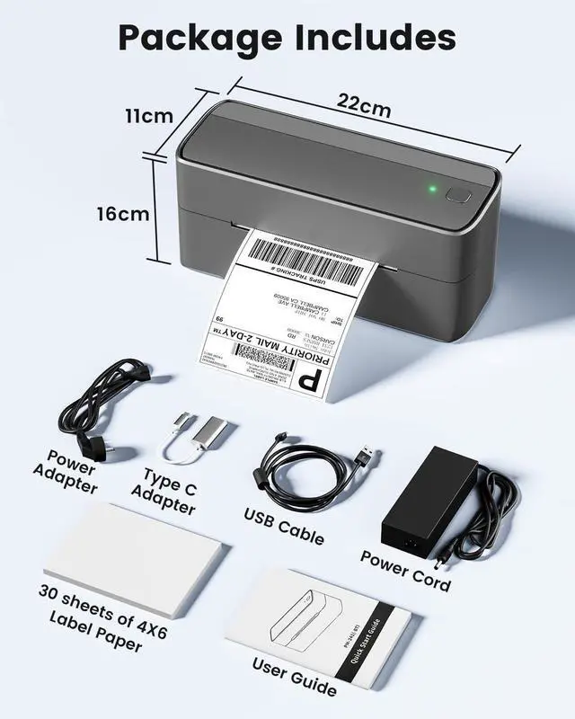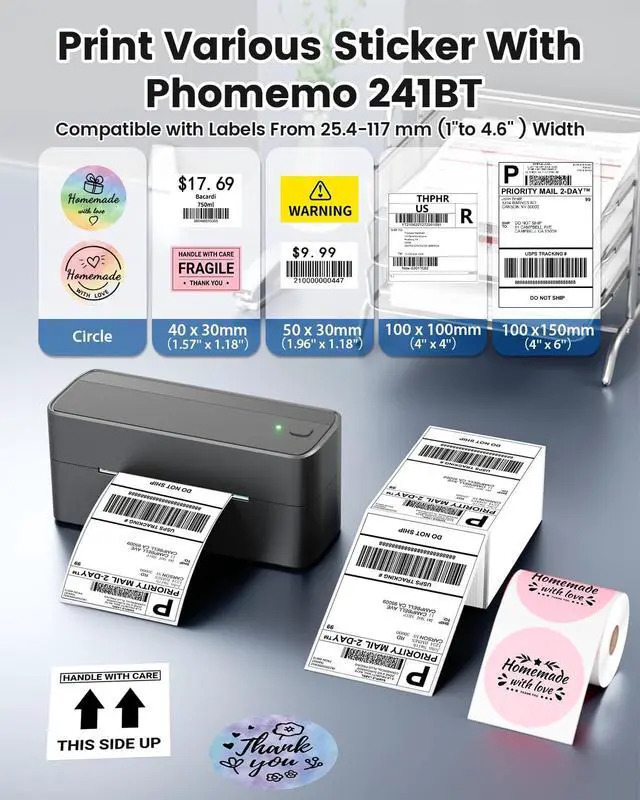 [Multi-Platform Compatibility] - This shipping label printer supports label widths from 1 to 4.6 inches, making it ideal for printing labels from major platforms like eBay, Shopify, Amazon, Etsy, UPS, USPS, FedEx, and more. Easily print text, barcodes, QR codes, forms, and use pre-made templates for home or business. Note: The printer supports black-and-white printing only. For color labels, purchase compatible thermal color label paper separately.