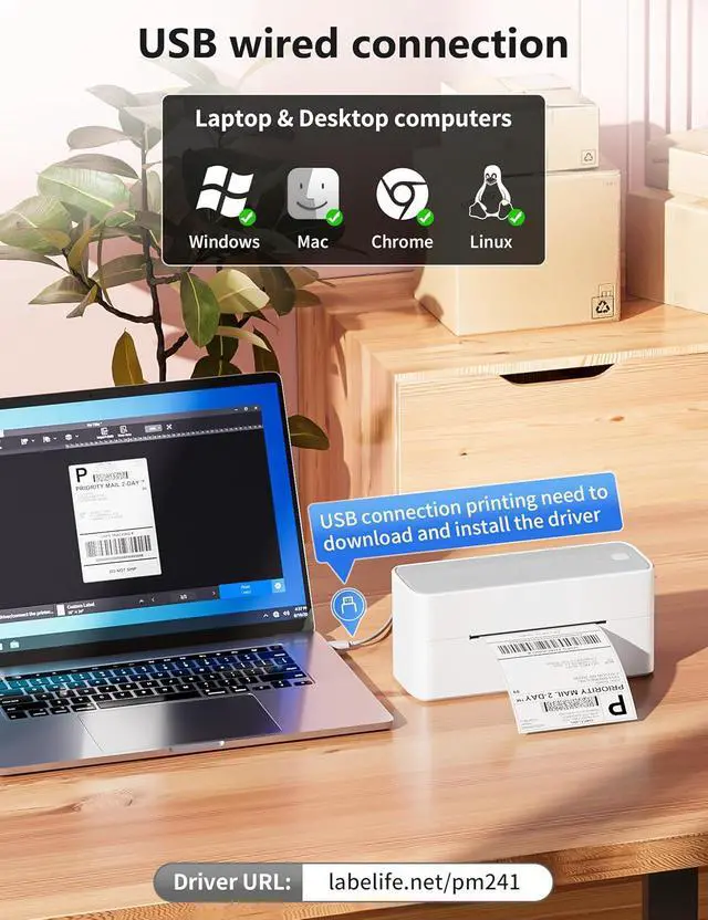 [Print via USB Cable] - For PC, Windows, Mac OS, Chrome OS, and Linux systems. For Chrome OS, need to enter Labelife in the Chrome web store and add the extension to your Google Chrome. (PC printing needs to download the driver: labelife.net/pm241)