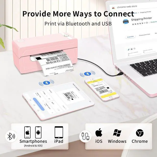 [PRINT WIRELESSLY]The label printer support printing wirelessly. For windows 8 or later and Mac, you can print via Bluetooth. For Android& iOS, you cant print via Bluetooth on phone, need to download the App "Jadens printer" and print on it.