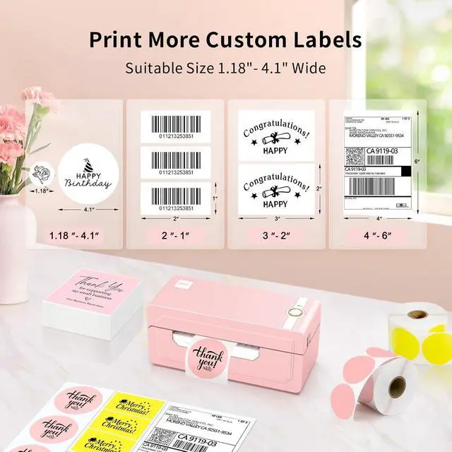 [HIGH TECH LABEL PRINTER] Equipped with a Japanese high tech thermal print head, 203 DPI high printing quality. No ink, No toner, Clean with no mess, economical. Works with both fanfold labels and roll labels. Label size: labels width ranges from 1.57" to 4.1"