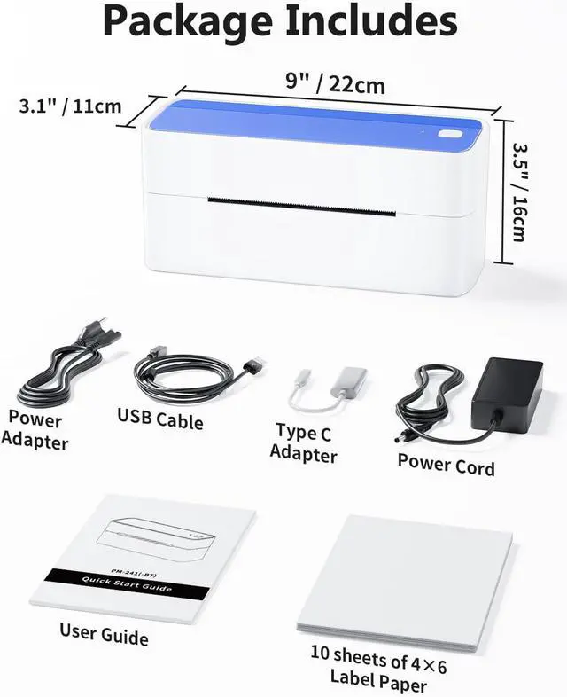 3. [Multi-Platform Compatibility] - This shipping label printer supports label widths from 1 to 4.6 inches, making it ideal for printing labels from major platforms like eBay, Shopify, Amazon, Etsy, UPS, USPS, FedEx, and more. Easily print text, barcodes, QR codes, forms, and use pre-made templates for home or business. Note: The printer supports black-and-white printing only. For color labels, purchase compatible thermal color label paper separately.