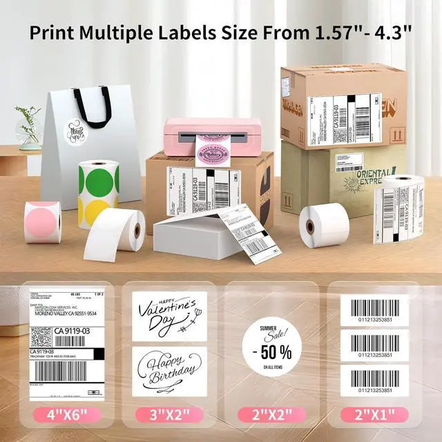 Fast and Clear Thermal Printing for Multiple Label Sizes: Whether you need 4x6 shipping labels or smaller 2-inch and 3-inch labels, the Gloryang label printer delivers sharp, clear prints with fast printing speeds. It supports labels ranging from 1.57 to 4.1, ideal for small business packages and shipping needs