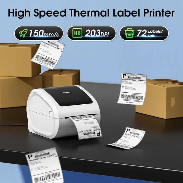 [Efficient Thermal Printer] - This thermal shipping label printer can support the width of 1 - 4.6 inches labels. The upgraded thermal printing technology allows the label printer 4x6 to print at a speed of 150mm/s. Average printing up to 72 sheets of 4"x6" labels per minute. Undoubtedly, Our thermal label printer 4x6 can help you to work more efficiently and comfortably