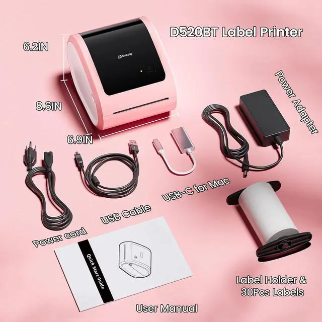 [Compact Label Printer] - D520BT Bluetooth shipping label printer with a larger paper bin design (up to 500 4x6 labels). Not only it supports roll paper loaded inside, but also supports fan-fold paper to load from the back of the thermal label printer and doesn't need an extra support holder. Multiple choices, as well as help you save desktop space, make your work more efficient and relaxed