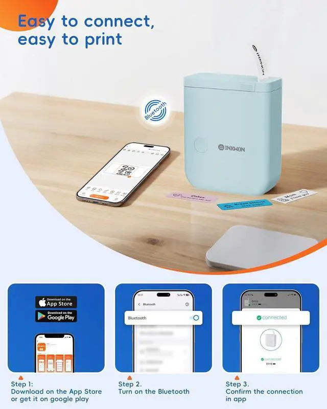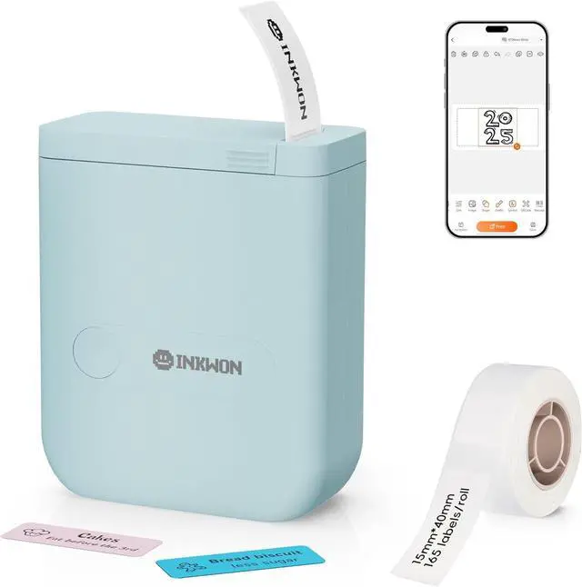 3. Versatile Labeling Made Easy: The InkWon Small bluetooth maker label offers built-in templates for home, work, holidays, and more. Customize labels with text, QR/barcodes, images, timestamps, and borders via the appeffortlessly meeting all your labeling needs.