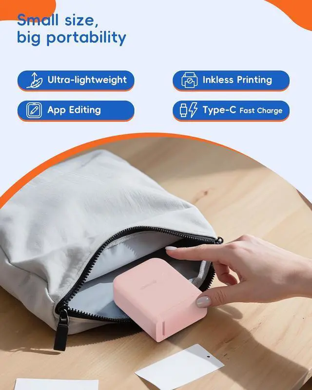 Ink-Free Thermal Printing: Skip the messour mini label printer uses thermal tech for sharp, instant prints with no ink or ribbons. Simple, eco-friendly, and cost-efficient.(Note:This device only supports black printing. For colored labels, colored patterned label tapes must be used for printing.)