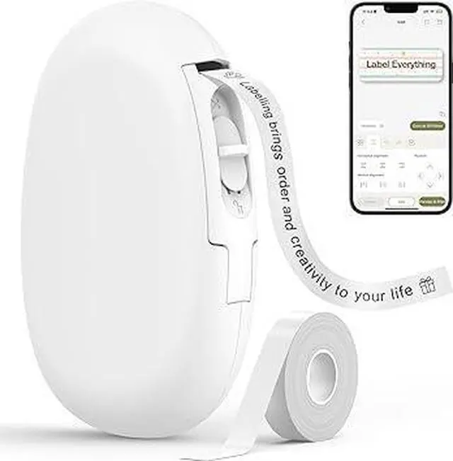 E10 Bluetooth Label Maker Machine with Tape, Continuous Waterproof Label, Versatile App with 35 Fonts and 1k+ Icons, Label Printer for Home, Kitchen, School, Office Organization White