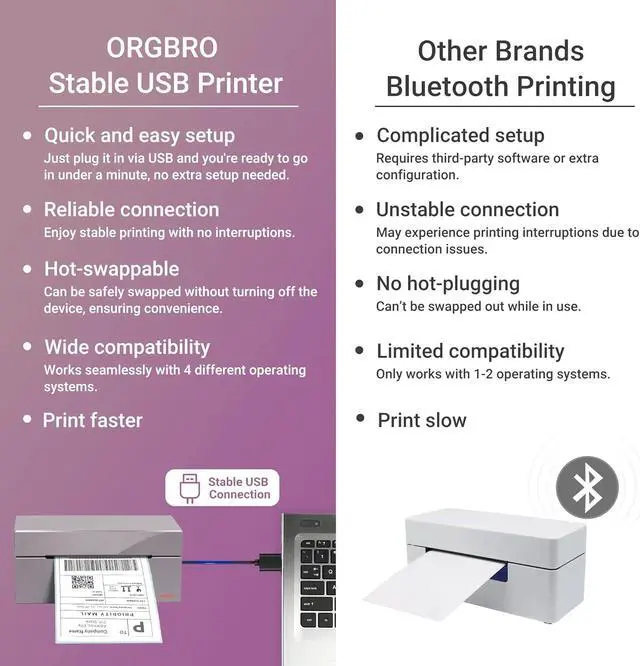 Professional Brand: ORGBRO provides lifetime free technical support; a USB flash drive containing printer drivers and instructional videos allows setup to be completed in under a minute