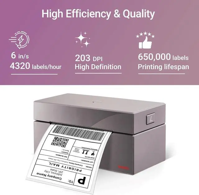 Fast Printing: The Z1 USB Shipping Label Printer does not support Bluetooth connectivity; It print up to 72 4x6-inch labels per minute for maximum efficiency; The 203 DPI high-resolution printhead ensures clear, readable labels for easy scanning and quick reading; Reliably print over 650,000 shipping labels