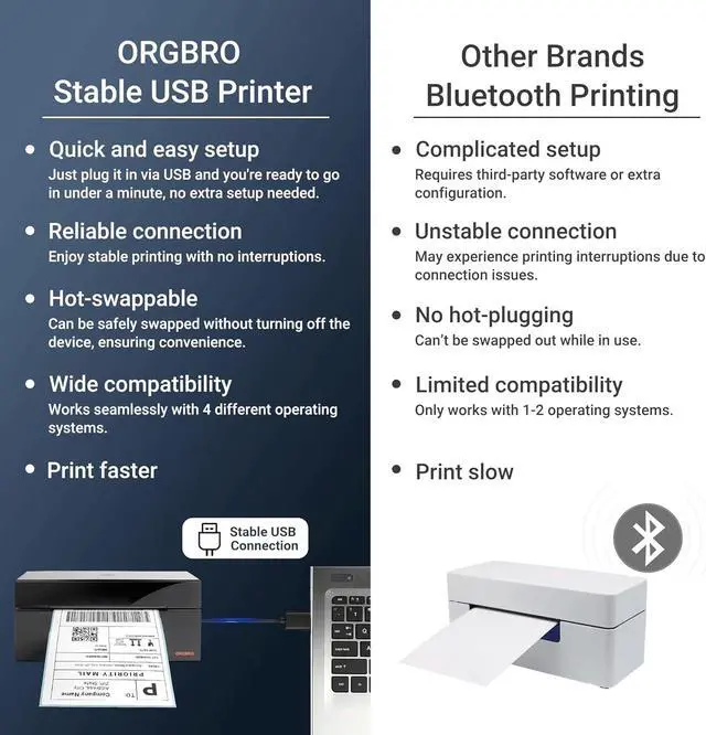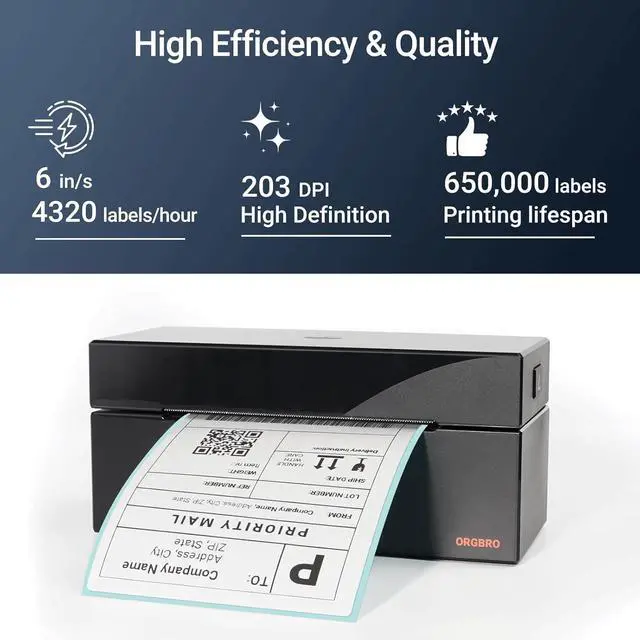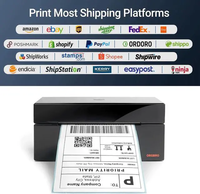 2. Easy to Use: This ORGBRO thermal shipping label printer is compatible with Windows (Windows 7 SP or later, Not compatible with ARM-based computers), Mac OS (Mac OS 10.15.4 or later), Chrome OS and Linux systems; Simple setup - connect via USB to your PC or laptop and download the driver (NOTE: Only supports USB connection, no Bluetooth connectivity); Print shipping labels, warehouse labels, Amazon FBA labels, barcodes, and more