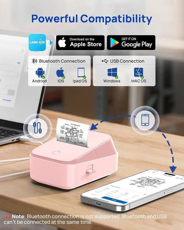 Easy to Use- PM260 Bluetooth Label Maker machine with tape supports iOS & Android and PC. For iOS & Android mobile phone, please download the "Labelnize" APP to Print via Bluetooth. For PC, you need to download the driver and APP for PM260 label printer, please visit " labelnize.com" to obtain the PM260 computer driver and APP. Notice: Please DO NOT connect directly via Bluetooth for all devices