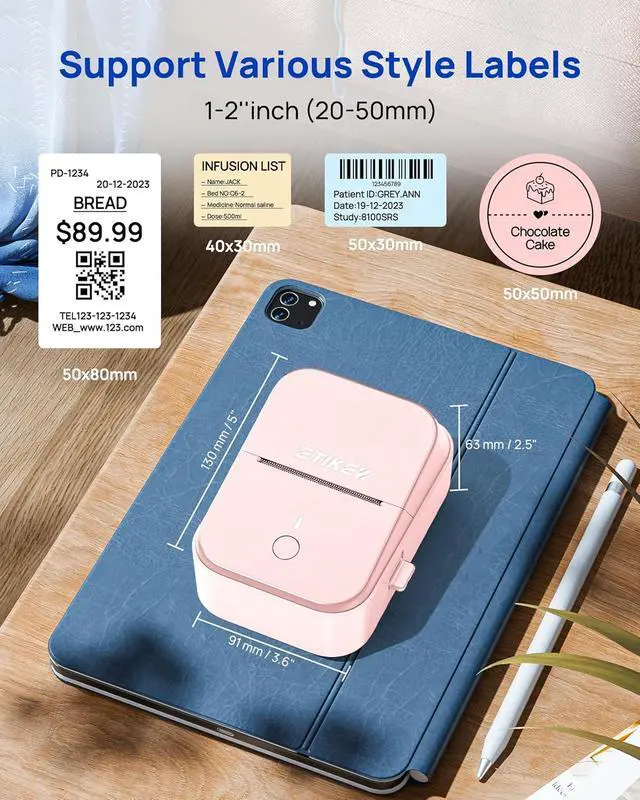 Premium Thermal Printing Quality: ETIKEZ label maker with BPA-Free Direct Thermal Technology. Equipped with high-speed chips and 203 DPI, you can enjoy high-definition without relying on ink or toner. This label maker machine with tape supports label widths from 1"-2" and includes a 40x30mm label tape. Note: Adjust the paper slot to secure the tape according to label size for precise alignment