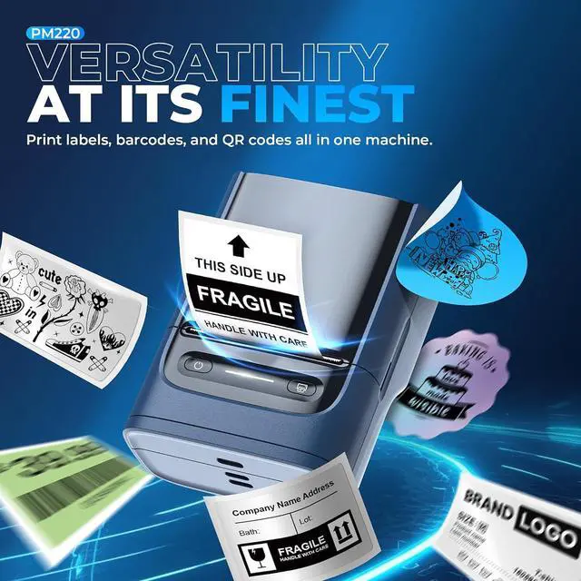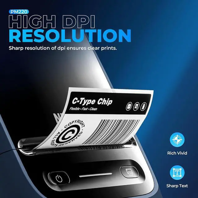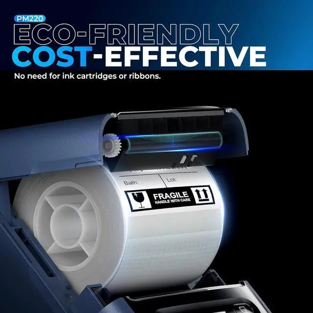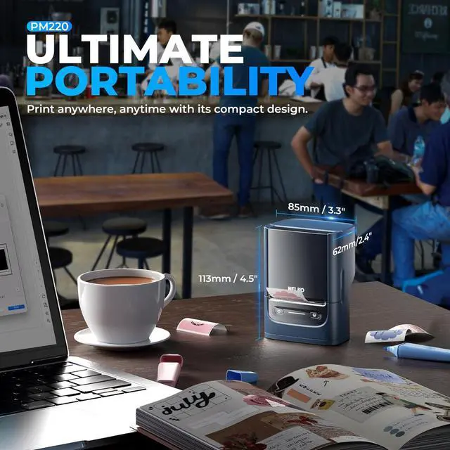 Portable- 2 Inch PM220 label maker machine with tape compatible with smartphone & PC. Easily connect label printer to your smartphone in just 5 seconds for fast and convenient printing, label printer achieves convenient, smooth & fasts printing. Mini compact design, you can bring this portable label maker machine with tape to anywhere.(Note: charging adapter not included, not suitable for fast charging adapter.)