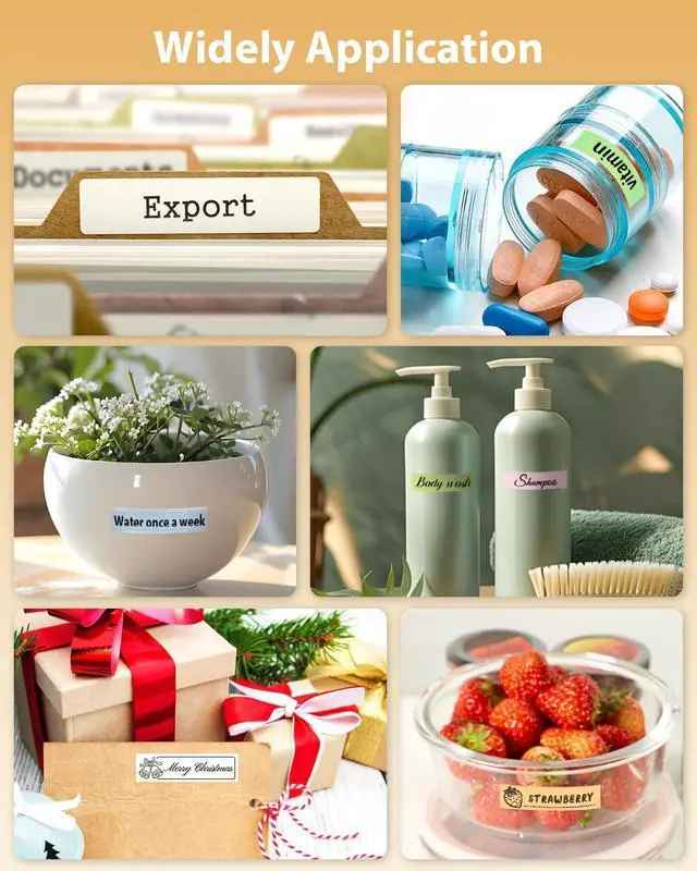 Ideal for Home Organization: This label maker machine is perfect for home, office, and school use. It aids in kitchen organization, spice labeling, food date marking, and categorizing clothes and cosmetics. It also helps label jars, manage office files, identify cables, and label personal items. For small businesses, it creates price and jewelry tags. In schools, it's useful for name tags and study notes.
