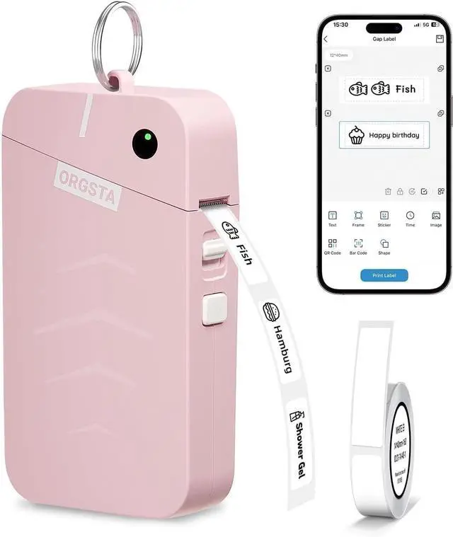 Multiple Creative Functions: The Snap & Tag app for this mini label maker provides various features and templates, easily create label stickers with text, QR codes, barcodes, materials, images, time, and borders; Customize label lengths with continuous tape, or use fixed-size labels for batch printing, featuring a built-in cutter for simple label cutting