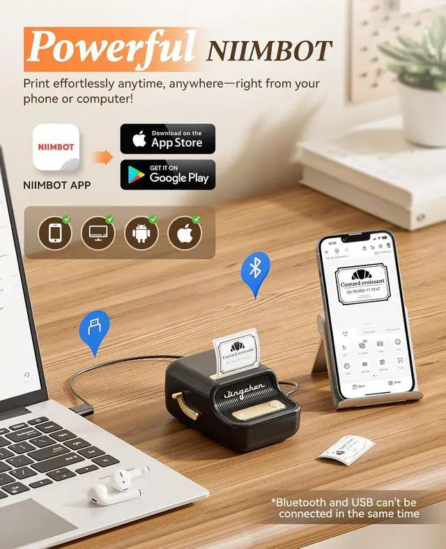 Easy to Use It is incompatible with iPad. B21 bluetooth label printer compatible with iOS & Android. Using App: Install NIIMBOT App from Apple Store & Google Play, Turn on B21 label printer and open bluetooth connection. Not compatible with Pad, not recommended for use with Pad. It compatible with PC, need to download the driver from the NIIMBOT official web