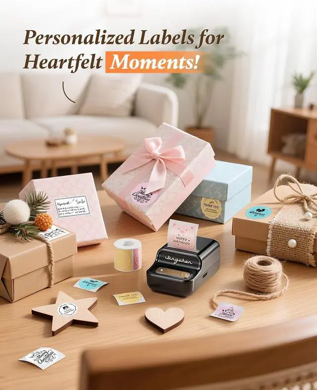 Widely Use Can use variety styles of thermal label tapes, such as white, color, cable cord labels and rare transparent labels. It's ideal present for labeling Chritmas/Mother's day/Father's day/New Year's gift for kids family and friends.valentines day gifts for him