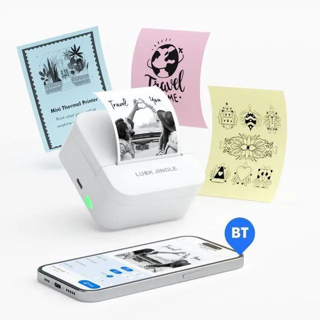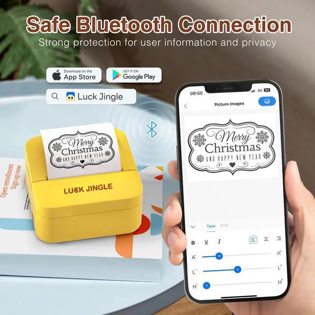 Smart APP Control & Rich Free Templates: Connect via Bluetooth to your smartphone or tablet (compatible with iOS and Android). The dedicated "Luck Jingle" APP offers a vast library of auto-updated, free templates including sticky notes, festive designs, labels, comic elements, and web print features. OCR scan function allows direct printing of scanned text, saving time on manual writing.