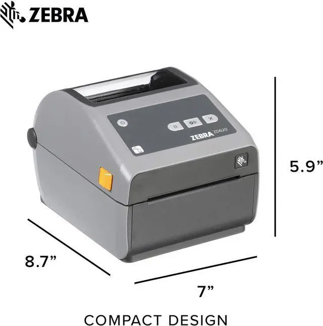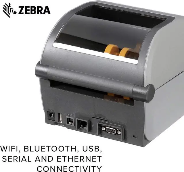 • ZD620d Direct Thermal Desktop Printer 203 dpi Print Width 4 in WiFi Bluetooth Ethernet Serial USB ZD62042-D01L01EZ