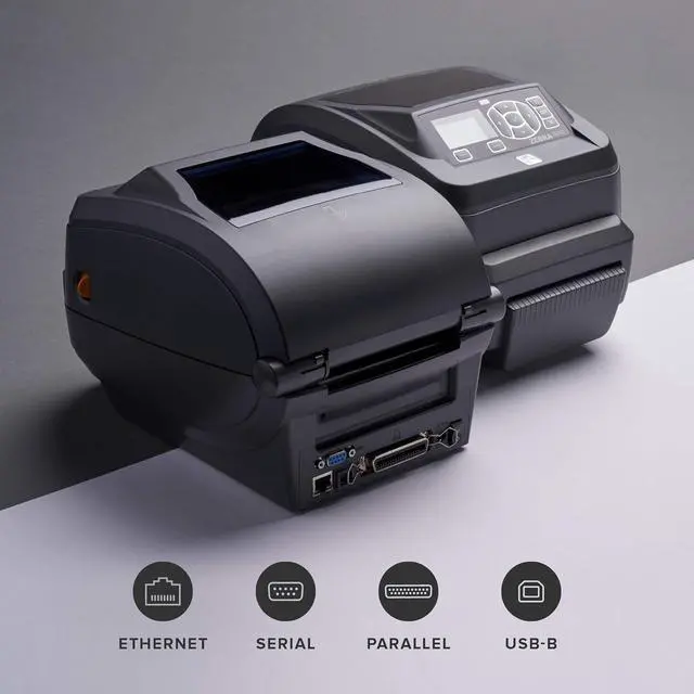 • ZD500t Thermal Transfer Desktop Printer 203 dpi Print Width 4 in Ethernet Parallel Serial USB Cutter Preinstalled ZD50042-T21200FZ