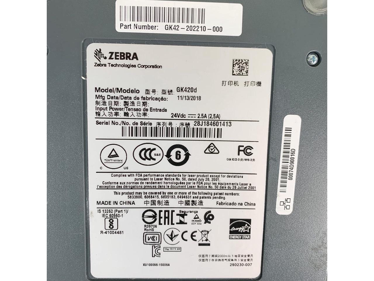 Ze bra GK420d Direct Thermal Bar code Printer USB LAN GK42-202210-000, Bundle with AC Adapter