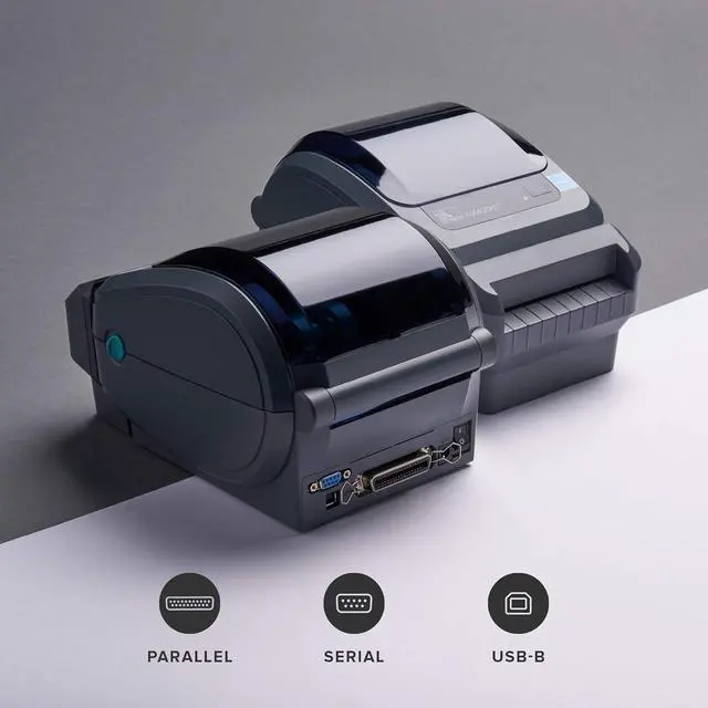 • GX420d Direct Thermal Desktop Printer Print Width of 4 in USB Serial and Parallel Port Connectivity Includes Cutter GX42-202512-000