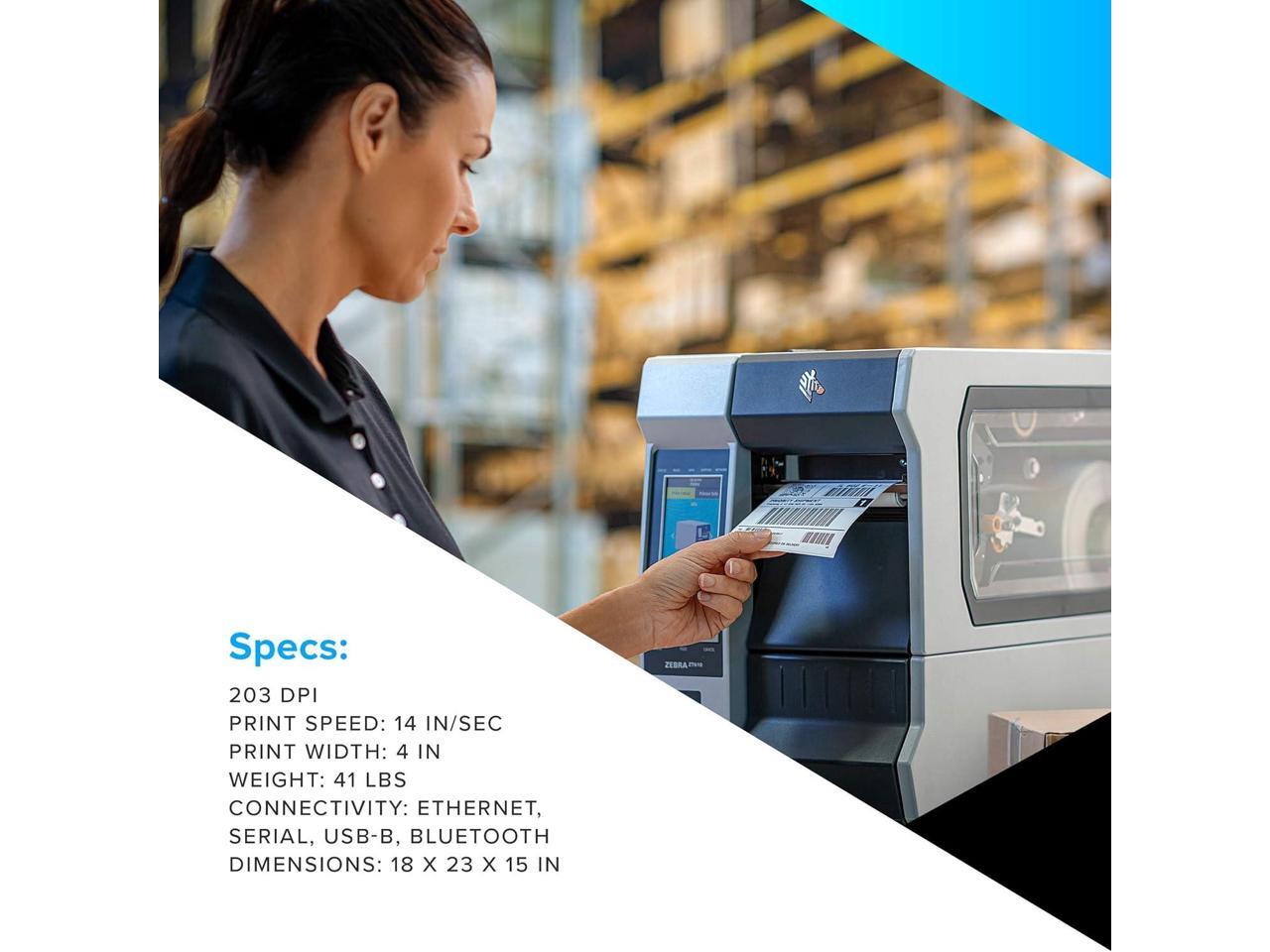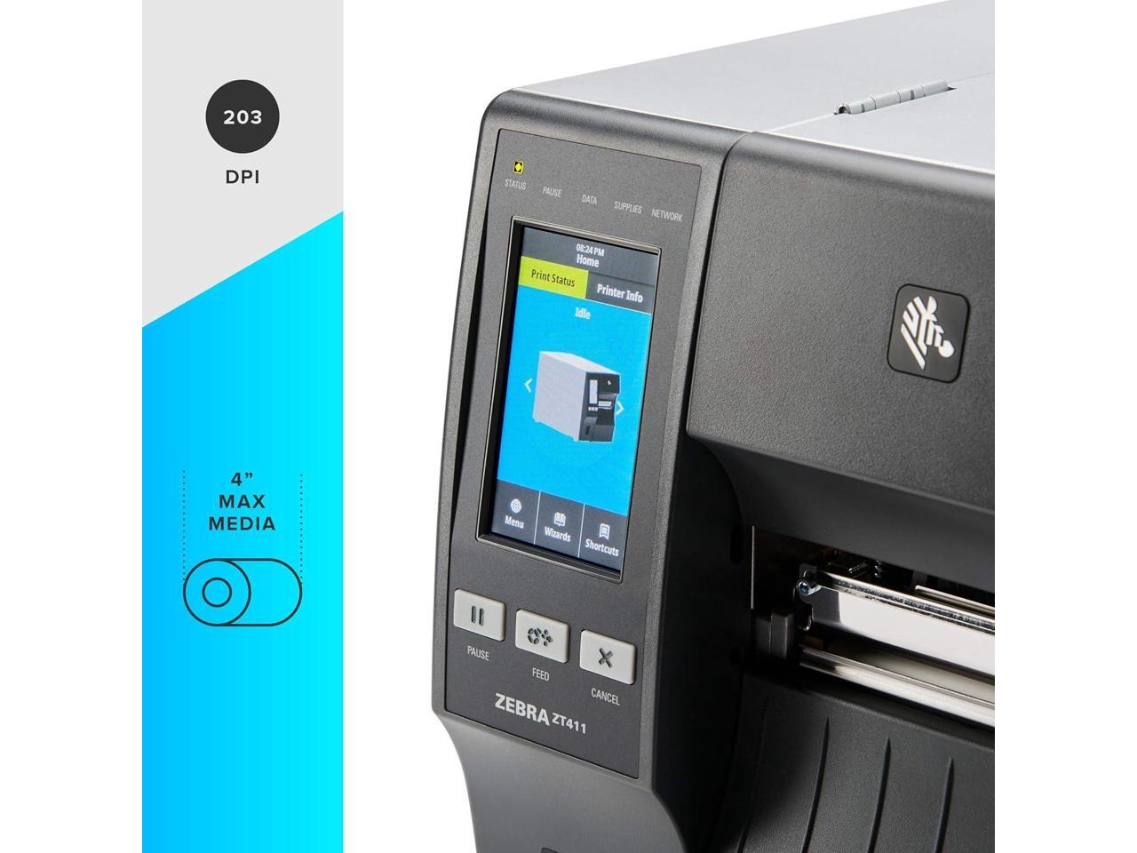 Ze bra ZT411 Thermal Transfer Industrial Printer 203 dpi Print Width 4 in Serial USB Ethernet Bluetooth ZT41142-T010000Z