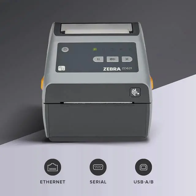 • ZD621 Direct Thermal Desktop Printer 300 dpi Print Width 4-inch USB Serial Ethernet ZD6A043-D01F00EZ