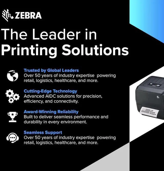 Ze bra ZD220 Thermal Transfer & Direct Thermal | 203 DPI | ZD22042-T01G00EZ | USB Connectivity | Standard EZPL | 4 in Width | Includes Jet Set Software